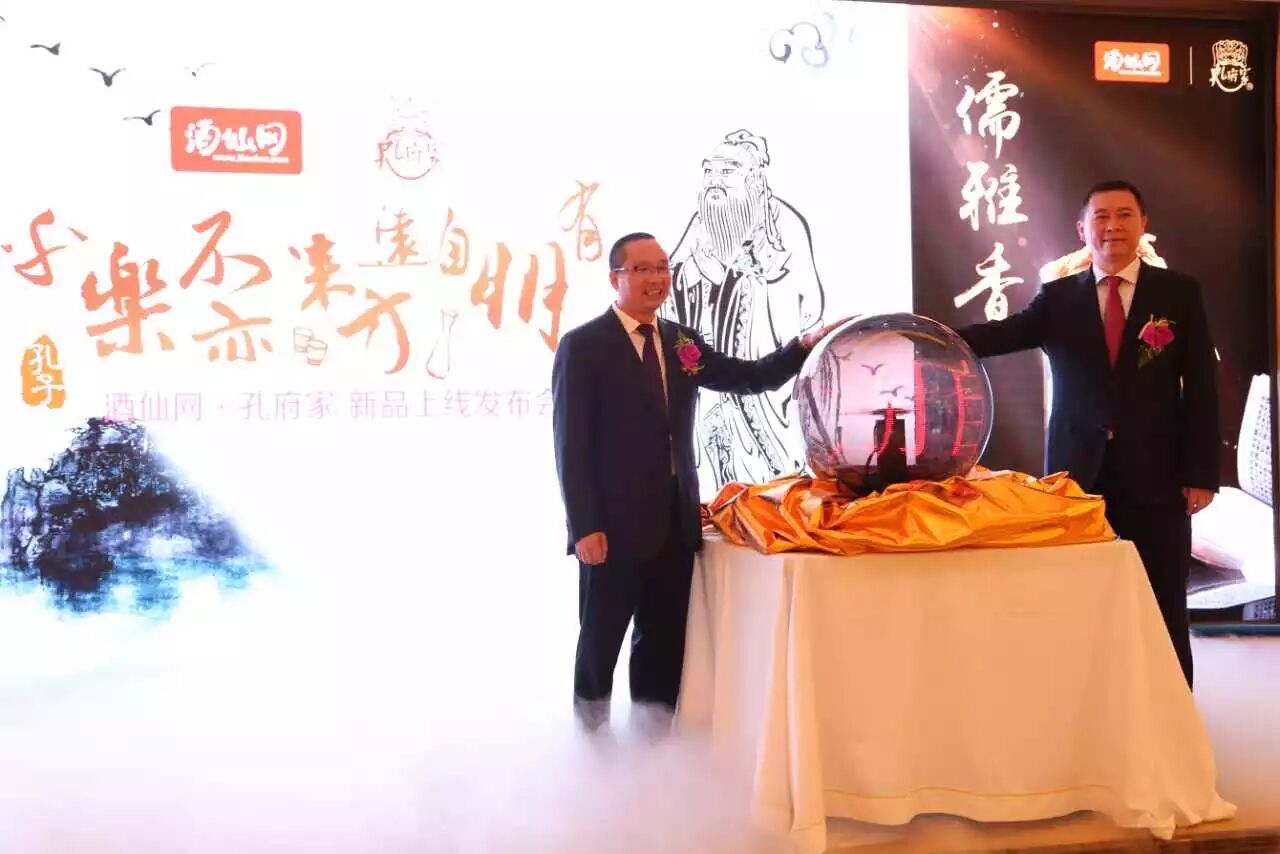 在与会嘉宾、媒体的见证下,孔府家总经理刘智涛宣布,孔府家与酒仙网线上新品即将正式上市,“朋自远方”新品将登陆到酒仙网及各合作销售平台。