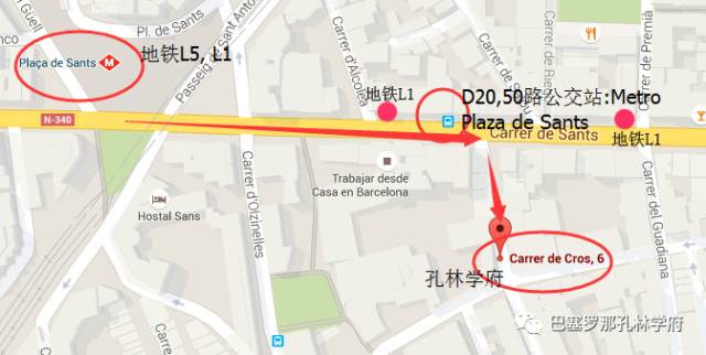 C/Cros,6-8,08014, Barcelona(街道口在Sants大街35-39号之间,拐进小街即可看到学校。开车顺方向,临时停车方便)