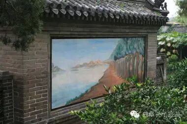 在孔府花园角门处,有幅出自清末一位不知名画家之手的壁画,画面上有一条大路、一排高树,朝观者而来。画家巧用边与角的视觉效应,使游者不论站在东、南、北哪个方向,,十分有趣。