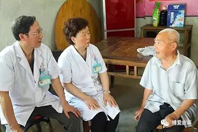 ▲安庆博爱医院外科专家刘永庆、妇科专家朱言华向老人致以节日的问候