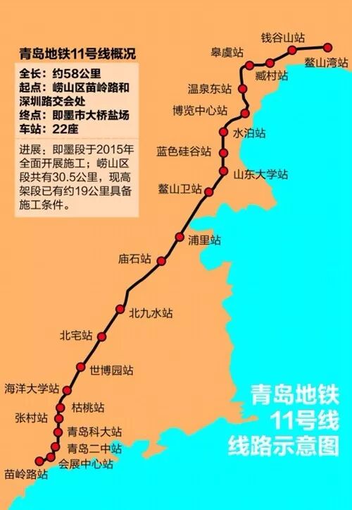 起点为苗岭路站,终点为即墨鳌山湾站