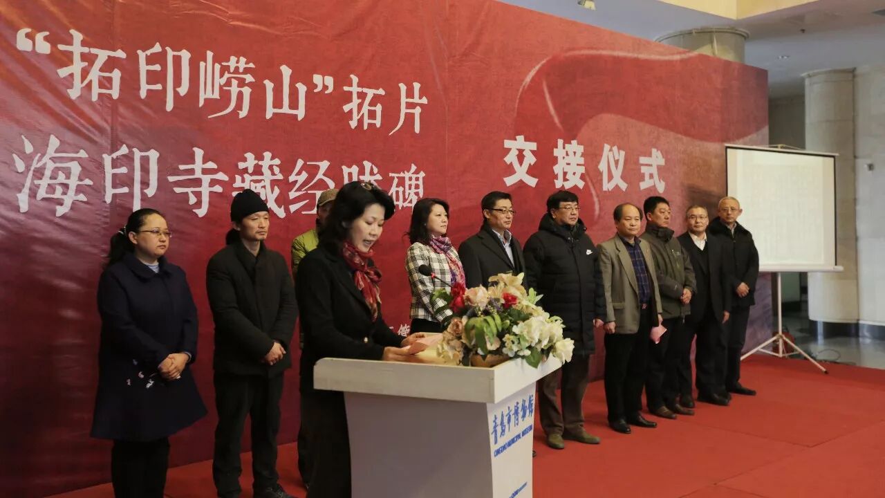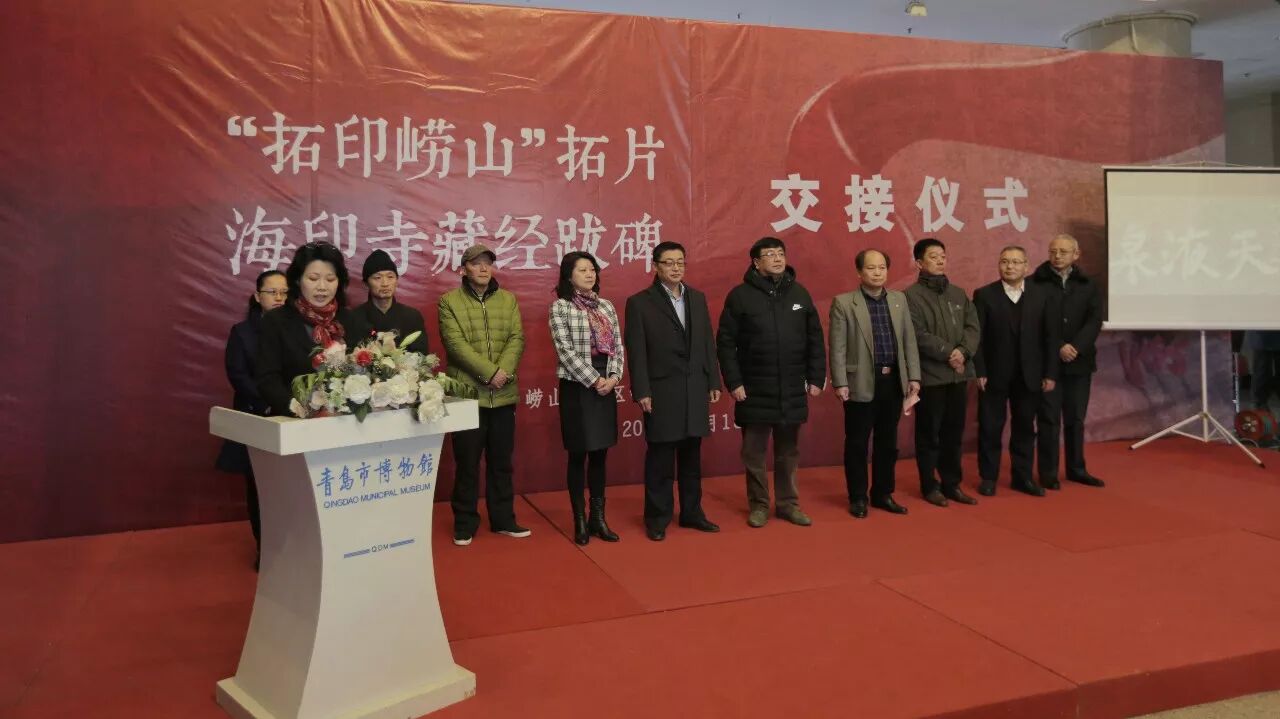 2018年1月18日上午,由青岛市崂山区旅发委与青岛市博物馆共同举办的“拓印崂山”拓片及海印寺藏经跋碑交接仪式,在青岛市博物馆顺利举行。