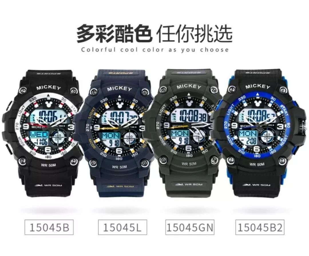 色彩靓丽,款式众多,经典表盘,电子时间显示,儿童轻松识别。
