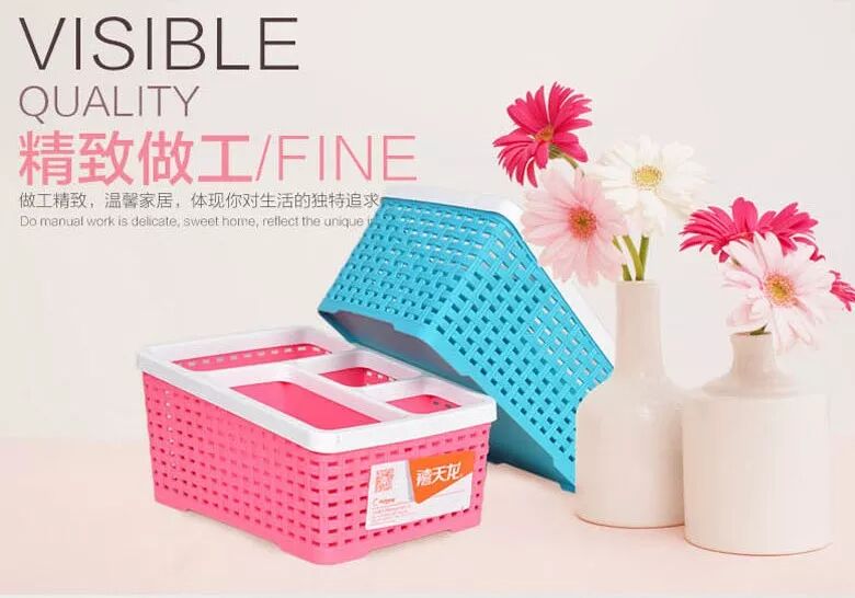 颜色清新亮丽,风格简约不简单。带盖仿竹篮收纳筐,选用PP环保材质,坚固耐用。