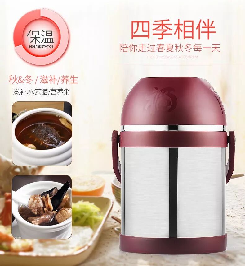 锅身一体成型,更加坚固,手柄、盖柄采用食品级塑料、坚固耐用,携带方便,真空保温隔热。