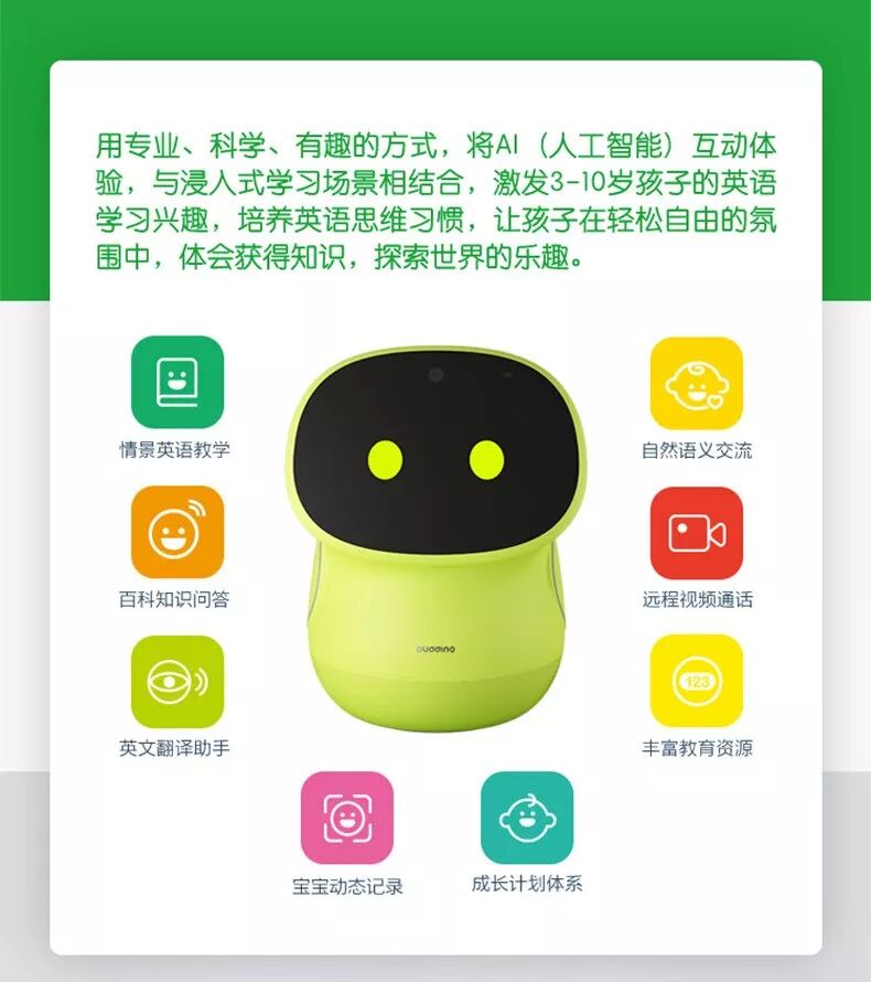 布丁豆豆是ROOBO旗下智能机器人,是北京智能管家科技有限公司 (ROOBO)旗下的一款智能机器人,于2017年CES上向全球首发。布丁豆豆智能机器人搭载自主研发的R-KIDS系统,聚合丰富教育资源,将AI(人工智能)互动体验,与浸入式学习场景相结合,帮助儿童进行情景英语教学等内容,并可通过自然语义等轻松有趣的方式回答儿童所提问题。