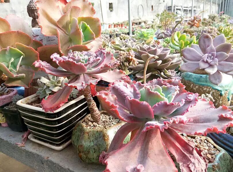 好了,草莓小编已经尝过,真的好吃。而此次来的最大收获莫过于基地里新增了3个多肉大棚!喜欢养花的妹纸们、小鲜肉、大叔大姐们~可不要错过了,偌大的大棚里,全是多肉有木有,这里是多肉的天堂有木有,各式各样只有你没见过、没有你买不到的品种有木有!直把小编跟友人们看的目瞪口呆、拔不动腿有木有~先不说各类五颜六色、肉乎乎的多肉长势有多喜人了,光是各种各样的花盆就得让你挑花了眼哇~小编也果断选购了两盆粉月影带回家,老板说,仅是淘宝,一天就能售出千余盆呢~走过路过不能错过哇~