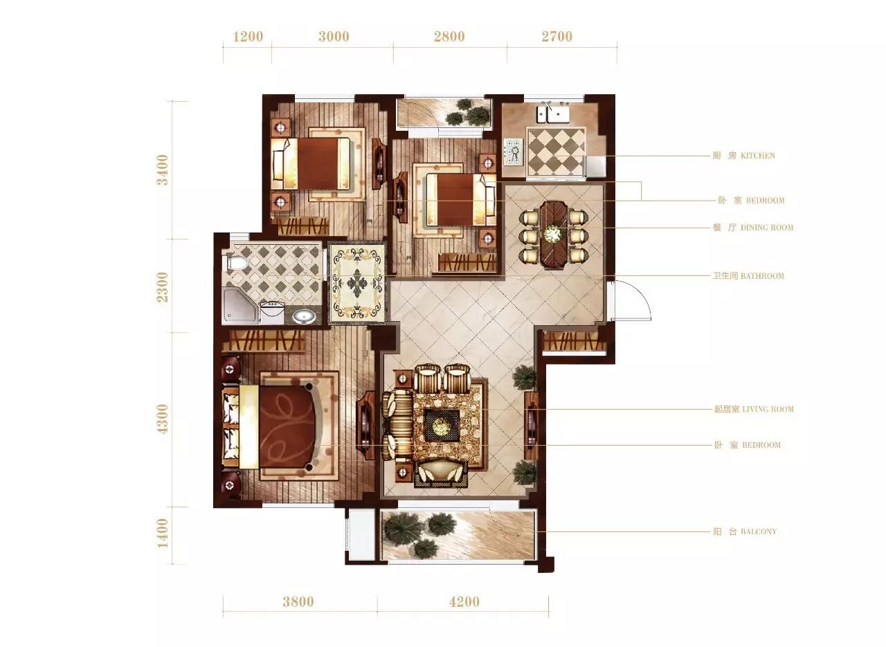 当你把儿童房改成小卧室,三间卧室,享受一家人的幸福生活,实现三代同堂的天伦之乐。