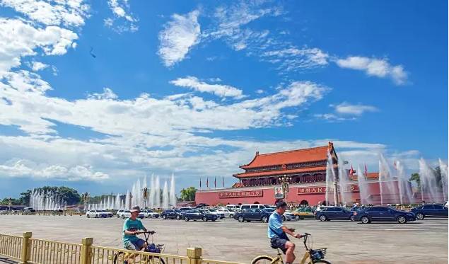 天安门广场位于北京的中轴线上,附近有天安门城楼、、国家博物馆、人民英雄纪念碑等众多国家象征景点。此外,每天举行的升旗和降旗仪式也是看点之一。