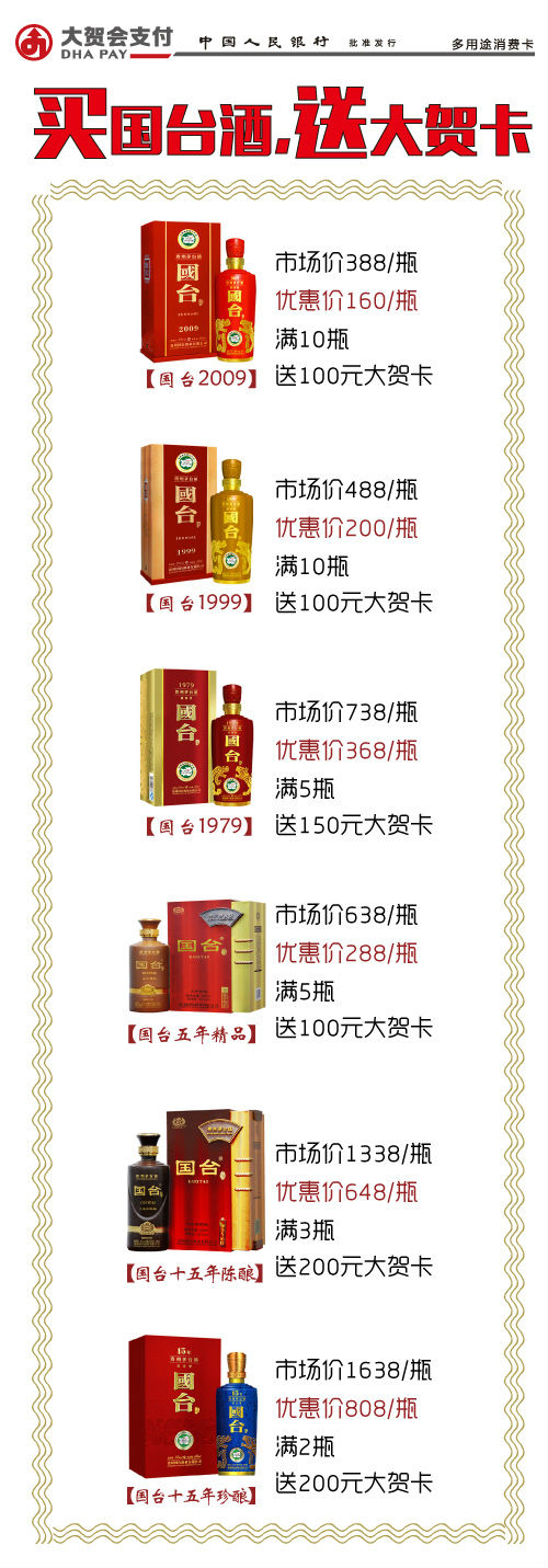 现大贺与国台酒强强联手,推出了许多给力的促销活动,详情如下: