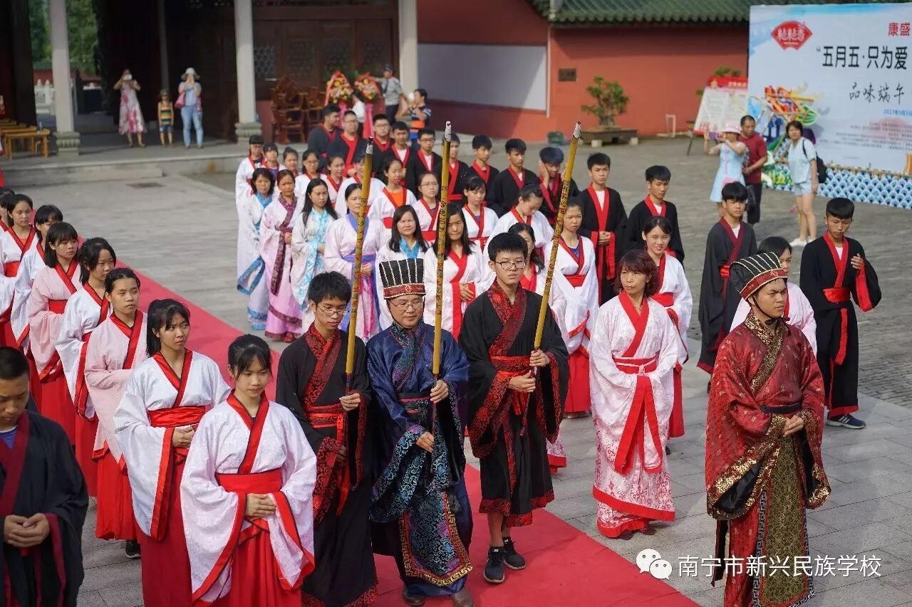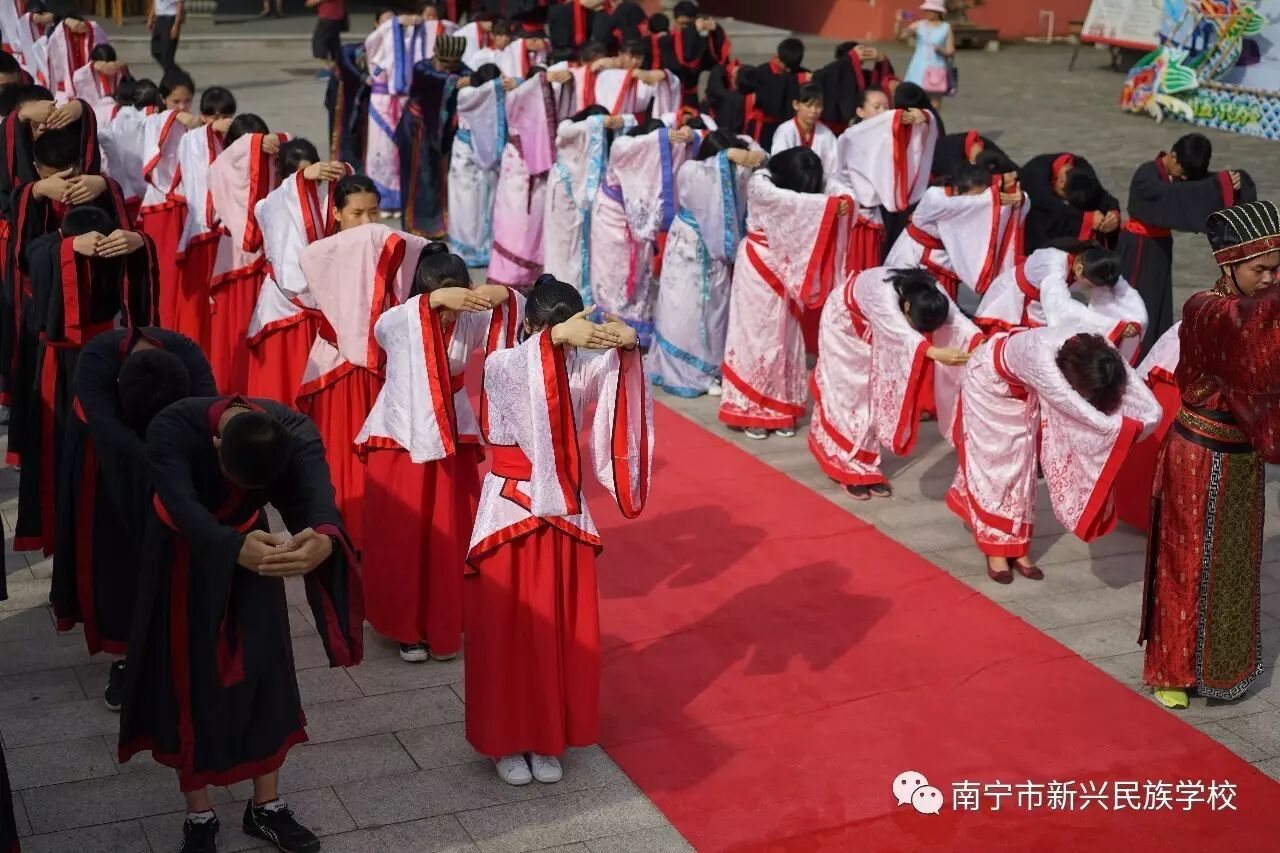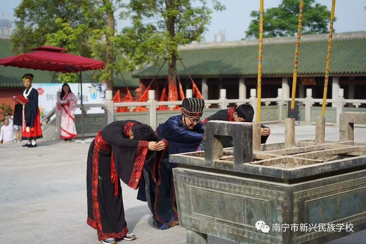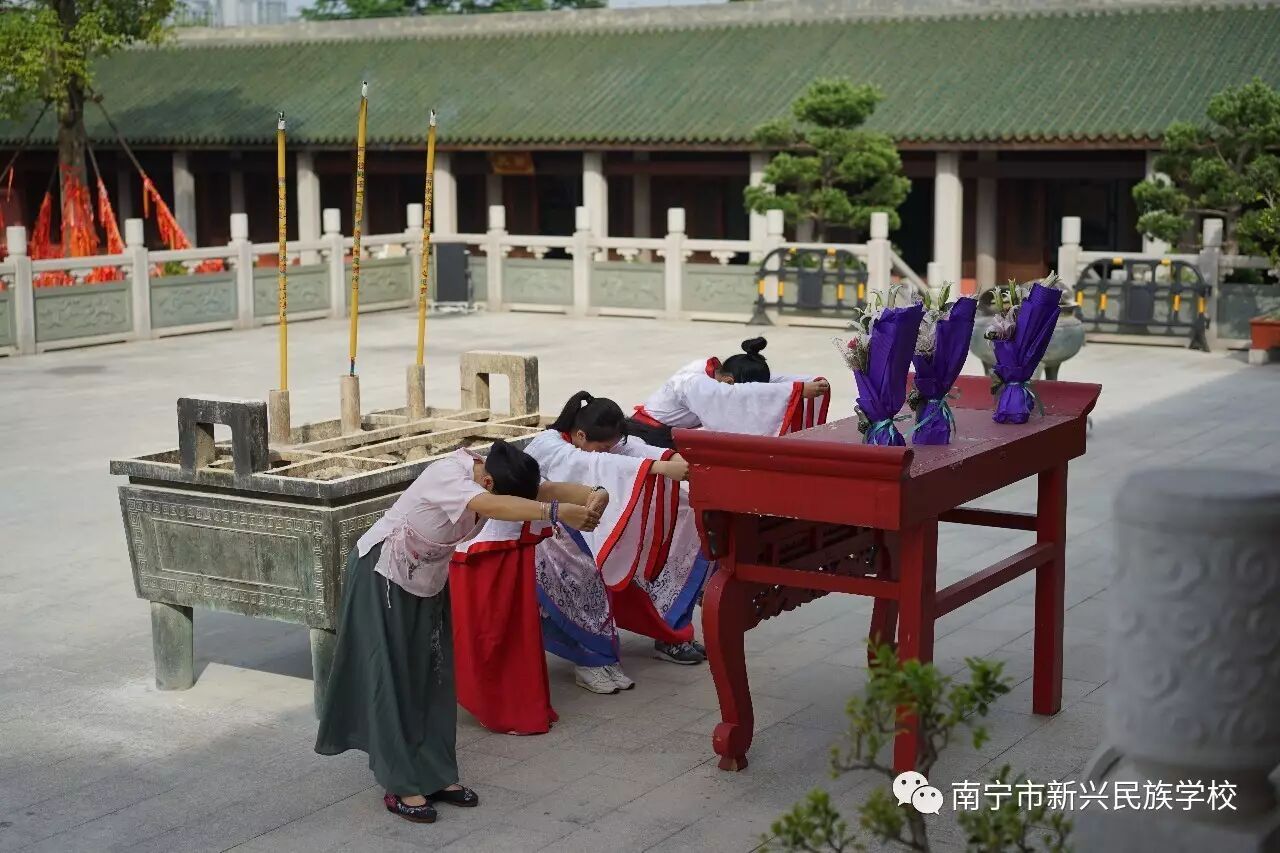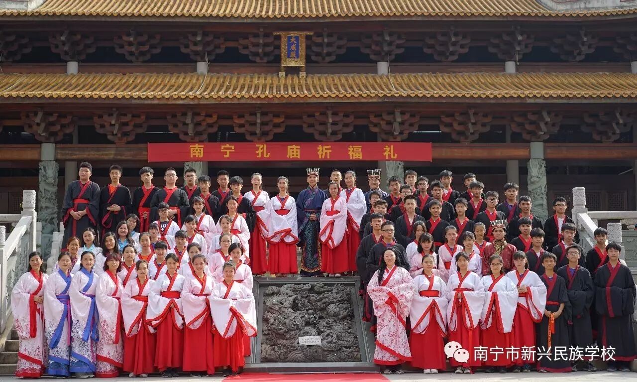 6月1日,天空晴朗,万里无云。南宁市新兴民族学校全体九年级师生在孔庙举行“祭奠孔子,为中考学子壮行”活动。