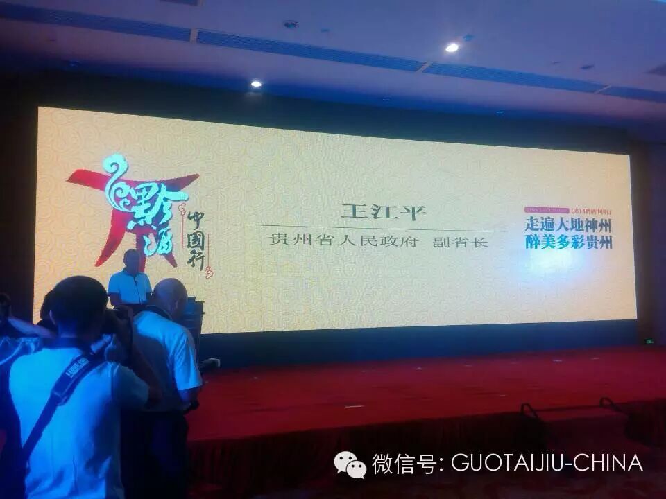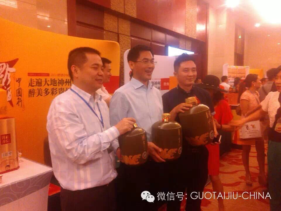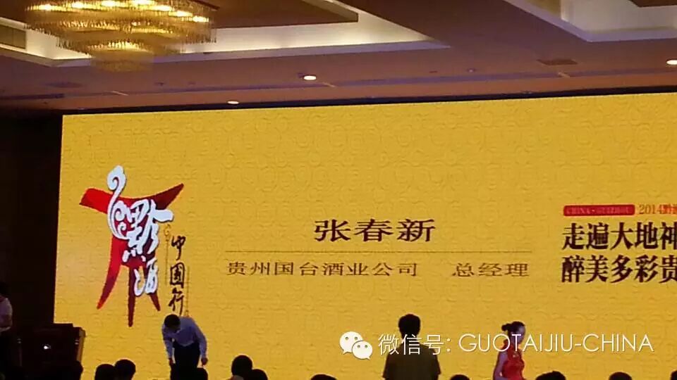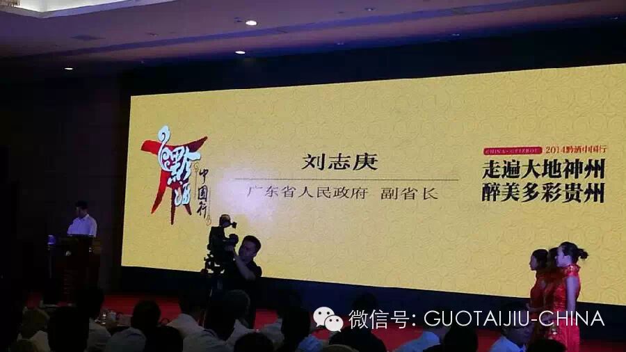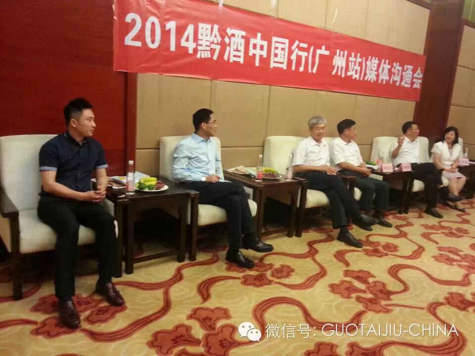 8月12日,由贵州省经信委主办的2014“醉美贵州”黔酒中国行宣传推介活动在广州隆重举行,广东省副省长刘志庚、贵州省人大常委会副主任傅传耀、贵州省副省长王江平、、广东省经信委副主任李向明、广东省酒类行业协会会长朱思旭、、广州市经贸委副主任谭曼青等出席宣传推介活动。刘志庚、班程农为宣传推介活动揭牌,傅传耀为“醉美贵州黔酒中国行”牌匾盖印,王江平向省经信委主任李保芳授牌。作为贵州五张名片之一白酒产业知名企业代表、贵州十大名酒代表,贵州国台酒业总经理张春新博士在活动现场针对贵州白酒未来发展趋势和创新模式作精彩发言,并在现场和贵州省领导一并向来自全国各地的经销商和白酒爱好者介绍和推介贵州高品质的酱香美酒。