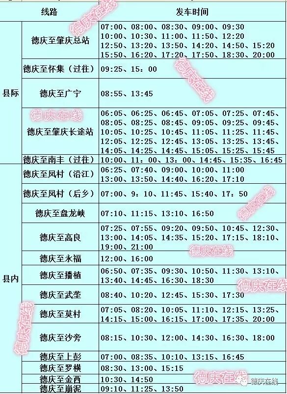 最新一份德庆发往各地班车的时间表