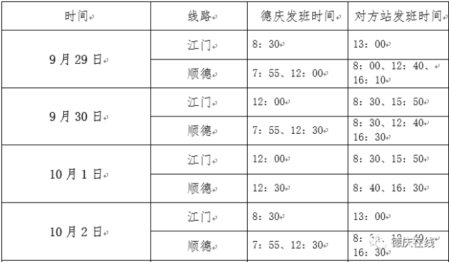 国庆中秋长假期间,德庆车站根据客源相应调整班次运行,计划在广州(广佛肇)线、肇庆线、佛山线、顺德线等增加班次。