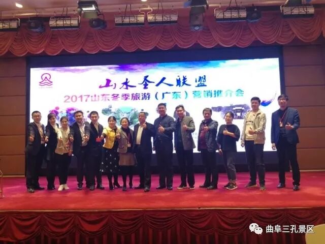 12月27日,由曲阜三孔景区、泰山景区等四家景区共同主办,泰安诚之旅国际旅行社、广东嗨皮牛旅游联盟承办的“‘山水圣人旅游联盟’2017山东冬季旅游(广东)营销推介会”在广州隆重举行,包括康辉国际旅行社有限公司广州总部、广州广之旅国际旅行社、广东省中国青年旅行社总部、驴妈妈旅游网、同程旅游网等在内的约50家旅行商参加了会议。