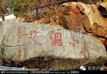 小洞天在红门宫东北深涧内。片石如几,广12平方米,厚1.5米,南侧有明代知泰安州事甘应甲题、范广书“小洞天”。谷底断崖层叠,横瀑飞流,自北而南有柳条、饮马、石峡三湾。谷侧多圆柱形铁黑色巨石,横断面层层包裹,似枯木年轮,上刻“醉心”。传为汉代文学家枚乘所说的“泰山之溜穿石”,俗称黑石埠,为环状节理辉绿玢岩,国内外罕见。此处一壑曲绕,清溪碧潭,山林涧草,森森蔓蔓,别有洞天。