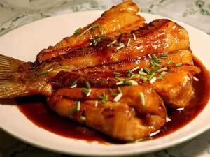 “烧秦皇鱼骨”,是孔府早期的一道名菜。据传,在秦始皇下令焚书坑儒时,孔子的第九代孙孔鲥,将《尚书》、《札》、《论语》等经典书籍偷偷藏于孔府故宅夹墙内。到了西汉景帝三年,皇帝刘启将其子刘馀封为鲁王。鲁王在治宫中,发现了孔鲥偷藏的这批经典书籍,重新加以保存。为了纪念孔鲥藏书,金代,在孔庙的孔子住宅,修建了“金丝堂”,后来又重建“鲁壁”。孔府后裔对秦始皇焚书坑儒,非常痛恨。在孔府厨师烹制以桂鱼与水发鱼骨为原料的菜肴后,就将此菜称为“烧秦皇鱼骨”。