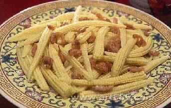 海米珍珠笋是山东省传统的汉族名菜,属于鲁菜系孔府菜。珍珠笋顺身切成两半,焯水,用冷水控干。香油烧5成热时,炸姜末,烹料酒,放入海米、珍珠笋、高汤、精盐,颠炒装盘即成!