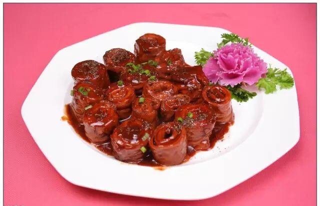 鲁菜,很多人会想到九转大肠。此菜是济南传统名菜,以猪大肠为原料,配以药材,红烧而成,味型咸甜酸辣香,