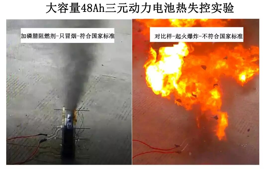 随着电动汽车产业的快速发展,锂离子电池单体容量也变的越来越大(通常大于10Ah),需要进一步采用阻燃型液态有机电解质来保证电池在严苛使用条件下(过充、过热或在极端外力情形(挤压、针刺))不会起火燃烧和爆炸。