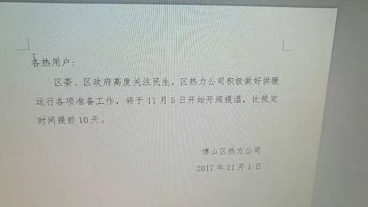 11月8日低温试运行,11月15日正式供暖,同时做好了特殊天气提前供热的准备。