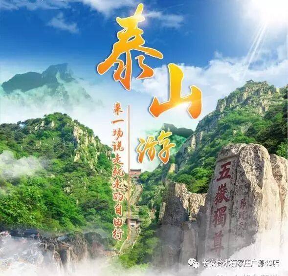 第一天 | 早7:30广源铃木集合8:00自驾车出发,赴美丽的泉城济南(约4.5小时左右),抵达后游览济南标志性建筑---【泉城广场】(40分钟);游览位居济南七十二名泉之首,被誉为“天下第一泉”的【趵突泉】(约1小时):趵突泉是最早见于古代文献的济南名泉,趵突泉公园曾被评为全国十大优秀园林、“十佳”公园和国家5A级景区,首批国家重点公园,素有“游济南不游趵突,不成游也”之盛誉;游览素有“泉城明珠”之称,济南三大名胜之一的【大明湖】:观赏“四面荷花三面柳,一城山色半城湖”的美景 后集合出发赴泰安,晚餐后约21:00左右由红门步行上山,依次经过:红门、万仙楼、斗母宫、观音殿、中天门、云步桥、迎客松、五大夫松、对松山、十八盘、南天门、天街、大观峰、青帝宫、五岳独尊石刻处、无字碑、日观峰、玉皇顶(泰山最高峰,海拔1545米)。。 | /午晚 | 泰安 |