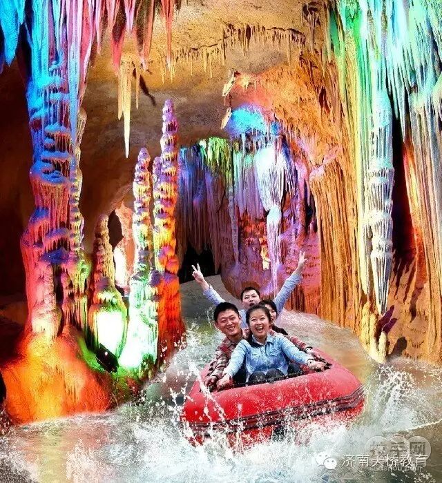 来到泰山地下大裂谷探秘,您会近距离的接触这“地球的伤疤”。一定会给您带来神奇、震撼的视觉感受。经过一千三百米长的大裂谷,便进入了另一个地下世界,钟乳倒悬,石笋石柱丛生,石花遍开,在五彩灯光的照耀下异彩纷呈。这里的溶洞经过亿万年不见天日的生长,终于要展现在世人面前,长达四千多米的溶洞就像一条蜿蜒盘旋的巨龙,走在里面看到形态各异、变化万千的钟乳石,耳边是潺潺的流水声,犹如进入一个奇妙的世界。景区利用地下暗河打造了一条长达四千米的地下漂流,水道蜿蜒曲折,高低起伏,配合变化莫测的灯光,动感十足的音乐,据了解,整段航程将达到20分钟以上,让您过足漂流瘾。
