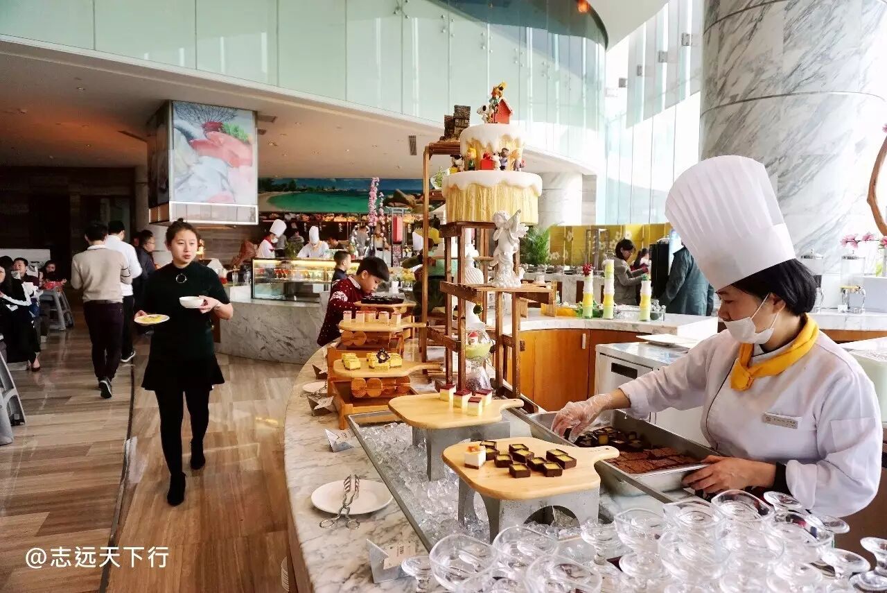 ▲整个自助餐厅分为几个取菜区,提供中式菜品、西式甜点、水果饮品、烧烤面食等百余种食品,可满足不同人群的用餐习惯。