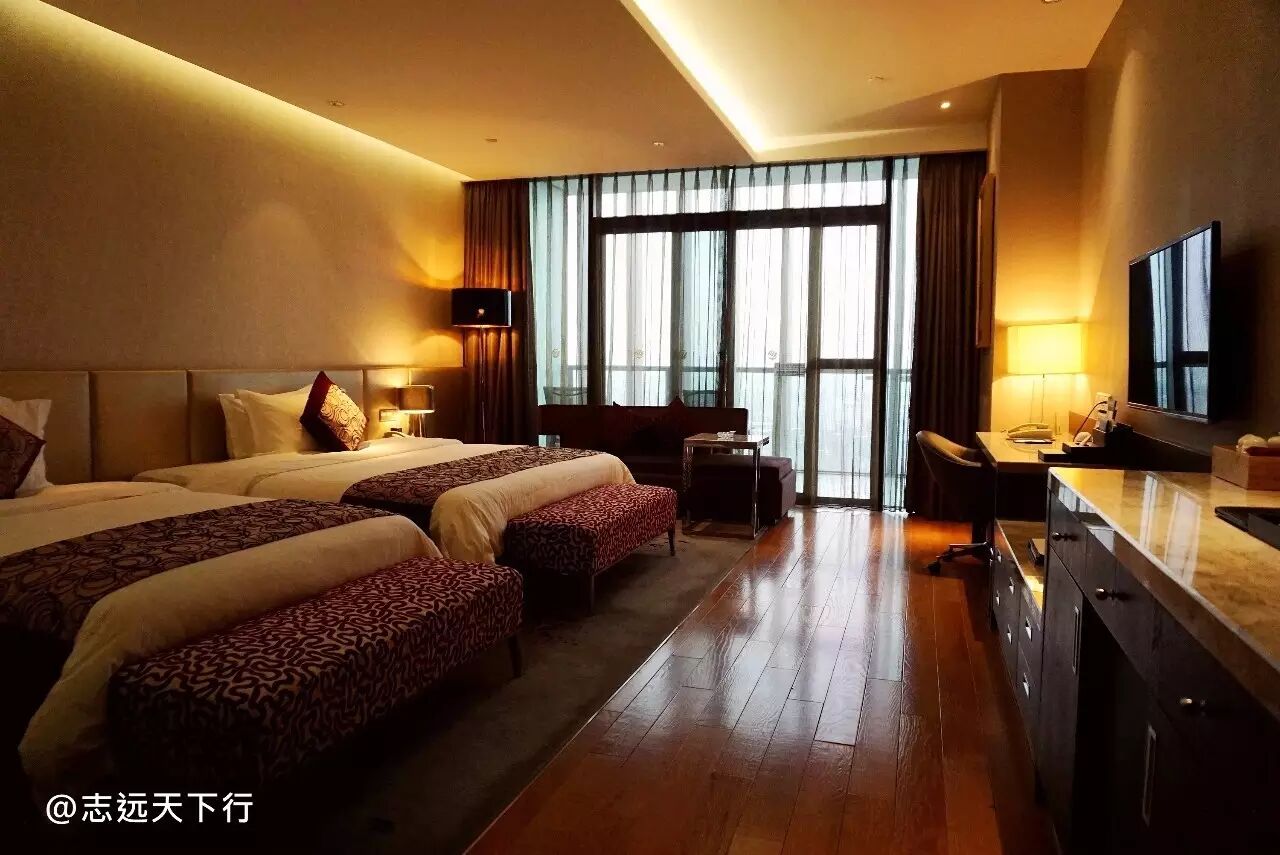 ▲办理完入住手续,坐上电梯,来到我所预订的15楼的房间。这是一间豪华的家庭房,有大小两张床,还有沙发,光是地板就用三种不同材料铺就而成(石材、木地板、地毯)。