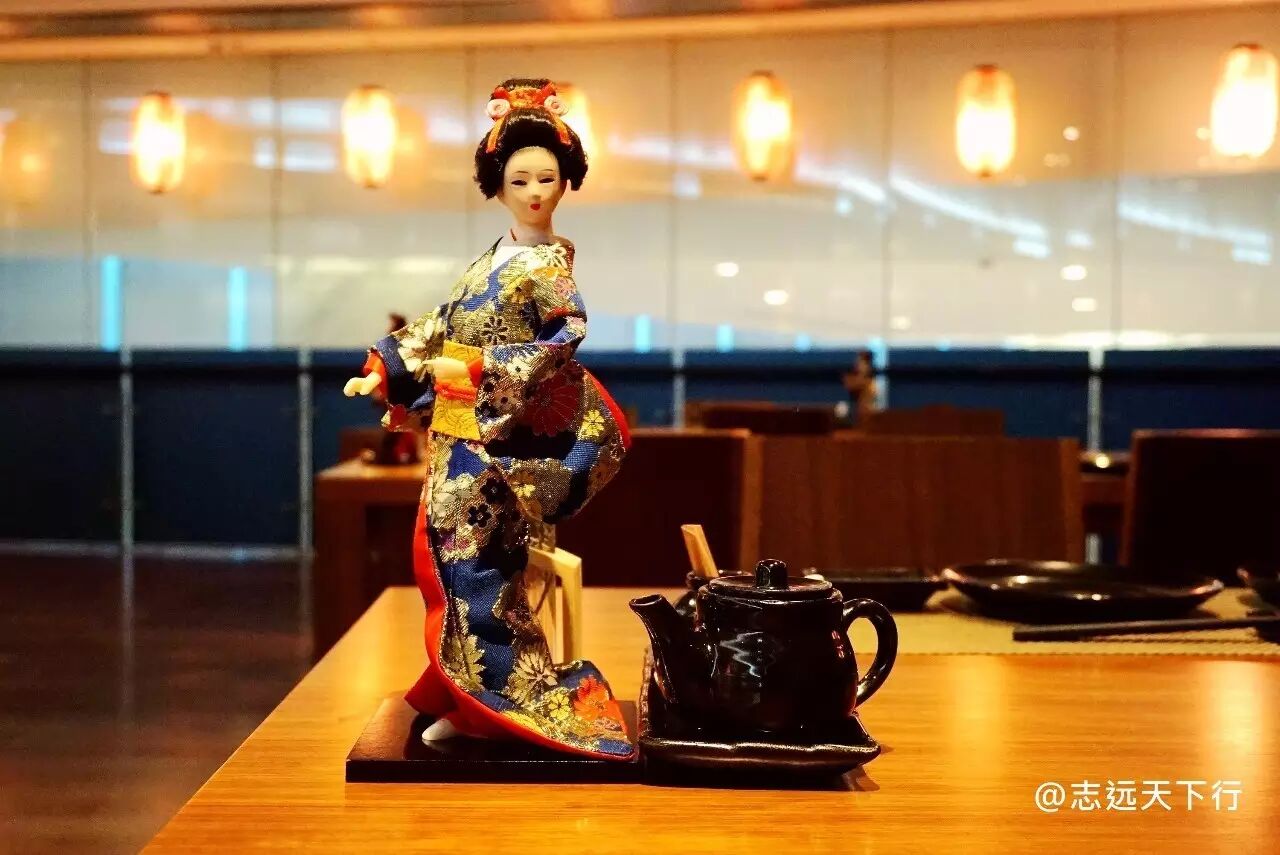 ▲餐厅虽然不大,装修却很有日本风格,餐厅入口用樱花树点缀,进入餐厅,是点菜吧台,客人可以很直观是看到各式日式料理,包括食材、加工步骤等。餐桌上也摆着一些日本和服女子玩偶,餐具的选择和摆设也很考究。