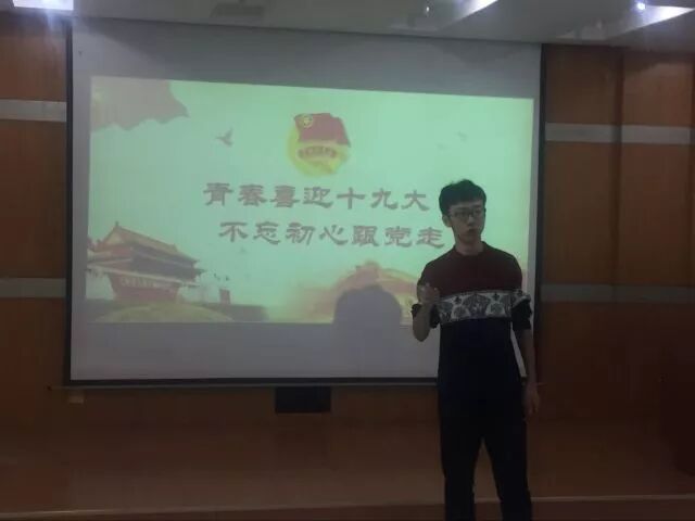 崔家诚同学以“红色基因,大工精神”为主题,由自己主持活动,参加团校培训等,来抒发自己对于红色基因的理解,他认为红色基因是我们机械人的骄傲,是我们的自豪,赢得了台下热烈的掌声。