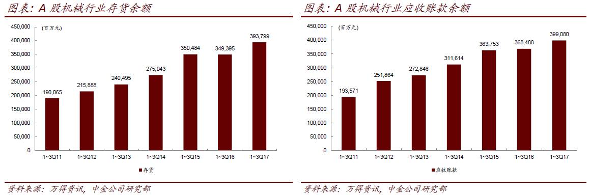 资产负债表:截至三季度末,机械行业存货余额较年初增长17.9%至3,940亿元,应收账款增长16.4%至3,991亿元,而行业资产负债率下降0.4ppt至56.6%。