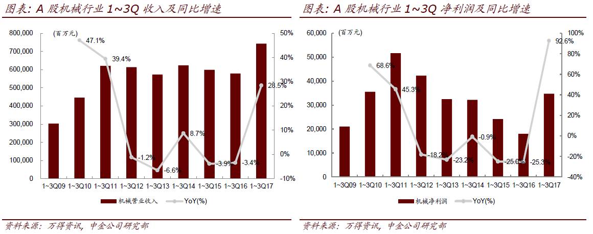 机械行业三季报业绩符合预期