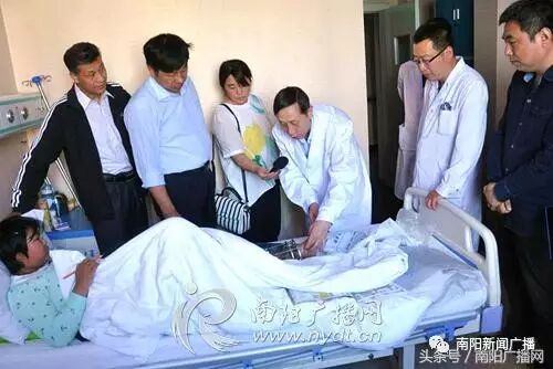 在南阳市骨科医院4楼的病房里,医生们正在对孔令鑫进行着当天的第二次检查