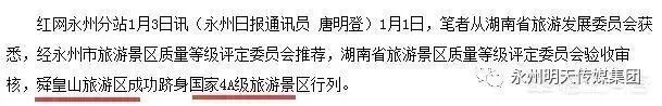 很多人可能都在度娘找到,永州只有以上四个4A级风景区,不晓得永州市舜皇山旅游区,在2016年1月1日通过湖南省旅游景区质量等级评定委员会验收审核,永州市舜皇山旅游区成功跻身国家4A级旅游景区行列。