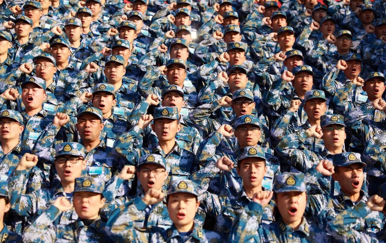 ▲在“不忘甲午国耻,激励强军责任”横幅上签名
