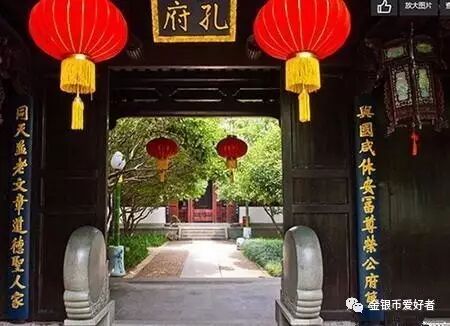 这次发行的30克圆形银质纪念币背面图案为曲阜孔府大门造型,古典的中国大门上有一副对联。