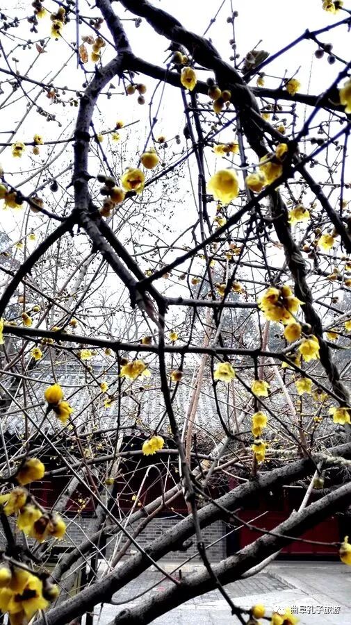 据了解,此棵腊梅为明代衍圣公所植,其花期长达近三个月。目前,这棵古腊梅已进入最佳赏花期,成为了孔府内300多种古树名木、珍花异草中难得的“迎春花”。
