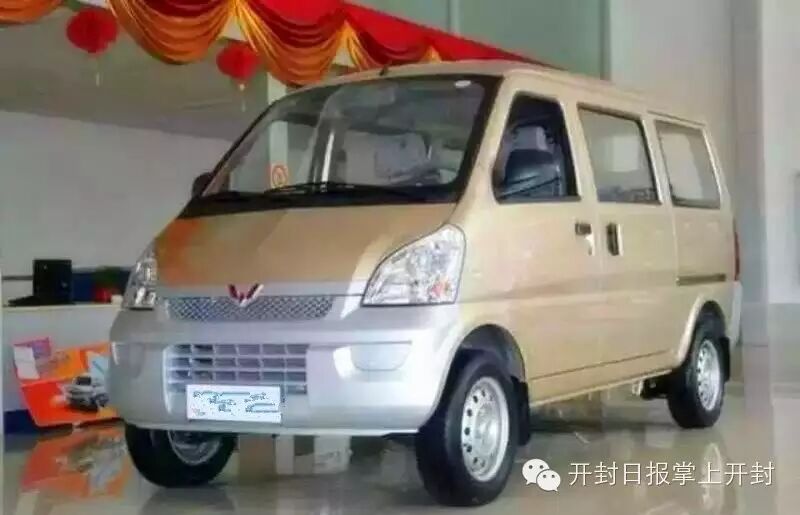 他开的是一辆银黄色五菱荣光面包车(与下图同款↓↓),车牌号豫BK5607,车后背箱门左侧有个凹陷痕迹。