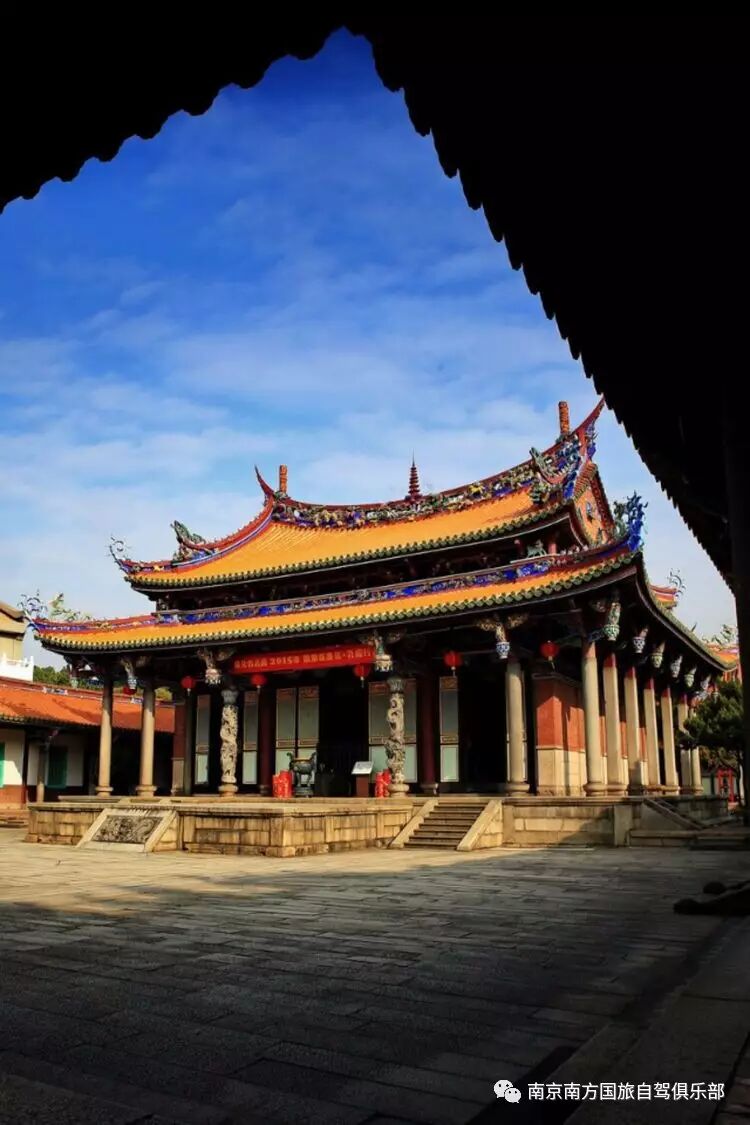 【孔庙】2500年前,孔子去世以后,鲁国就在其故居之上建起了祠堂奉祀。经过历代王朝不断地修缮与扩建,曲阜孔庙的规模巨大。整个建筑群是仿皇宫建筑,气势恢宏,布局严谨。整个建筑群贯穿于一条中轴线上。起于金声玉振坊,由南向北依次要穿越棂星门、太和元气坊、圣时门、过壁水桥。进大中门后,再经奎文阁、十三碑亭、大成门、杏坛、大成殿、寝殿到最后一座殿堂——圣迹殿,这是孔庙的主体。由大成门向东,进圣承门,达诗礼堂、鲁壁、孔宅故井及祟圣祠、后为家庙,这是孔庙的东路。由大成门向西,进启圣门,达金丝堂、启圣殿及启圣寝殿。