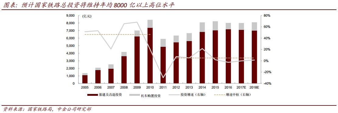 ►下游需求有韧性,推荐轨道交通、工程机械和集装箱板块。根据中金地产组、建筑组策略报告,2018年地产/基建固定资产投资增速预计分别为10%/12~15%,其中地产投资增速或超市场预期,而基建投资增长则呈现出一定韧性。同时在全球经济复苏大背景下,中金交运组预测2018年集运需求增速稳定在5.3%[1]。据此,我们重点推荐受益于国铁竣工里程复苏与城轨建设景气叠加的轨道交通装备;受益于房建、基建需求持续增长的工程机械;以及受益于集运复苏的集装箱行业。