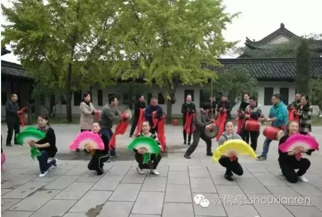 几位年轻靓丽的少妇手舞罗扇随着节奏扭动着腰肢,她们丰满的体态,灵动的腰身,迷人的双眼时时秋波频动,让“寿州锣鼓”更加具有表现力,惹得游人久久不愿离去!
