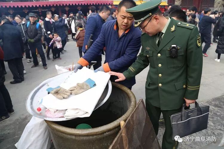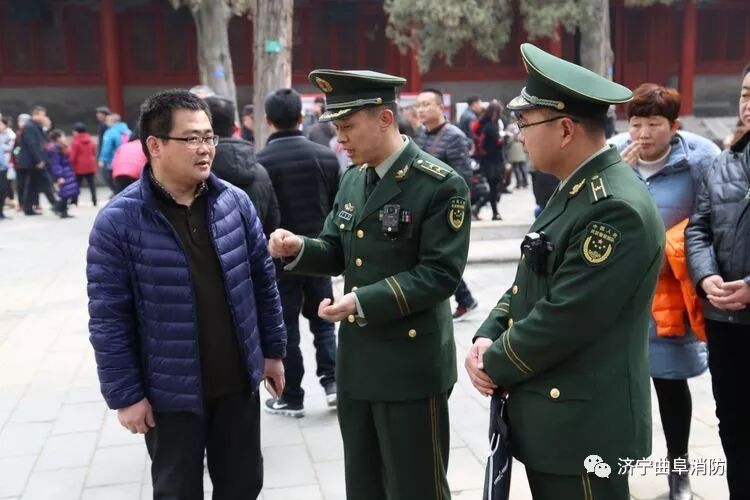春节期间三孔景区客流量持续增加,大队安排专门人员到景区驻勤,确保火灾发生时,第一时间进行处置。
