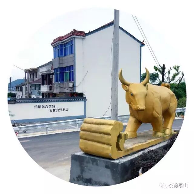 藕浦自然村的标志性建筑——金牛,是泰山人民辛勤耕耘的象征,也表达着泰山人民的生活态度,只有脚踏实地默默付出,才能在工作、学习上有所收获。