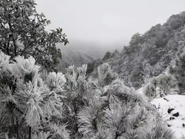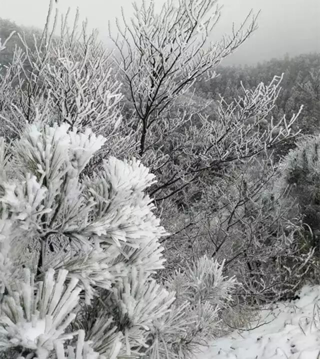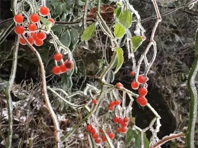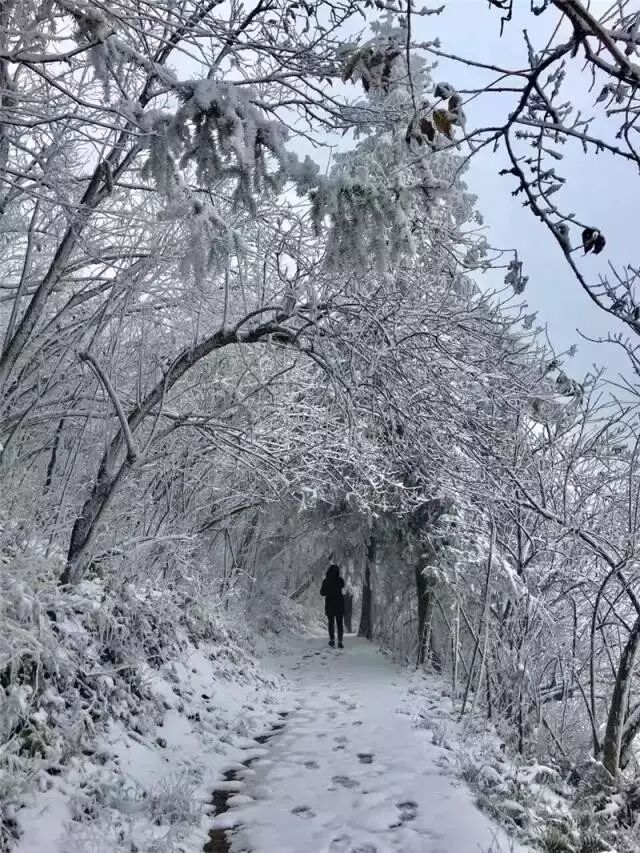 海拔较高的万寿寺和万和湖等地方积雪厚度达到5-6厘米,变成一个银装素裹、玉树琼枝的冰雪童话世界。