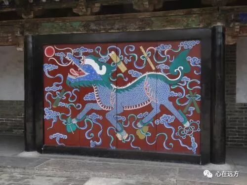 进入内院就可以看到一个影壁上画着一头类似麒麟怪物,据说是神兽,它生性贪婪,名叫“贪”,这也是主人用来告诫自己和子孙不要贪婪,要廉洁奉公。