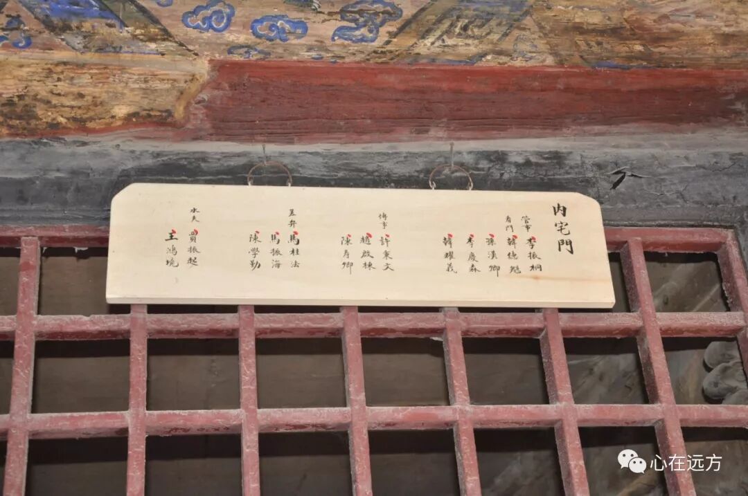 内院门的一侧有个类似的宣传栏一样的板子,上面挂着不同人名的牌子,这个上面是当日值班仆人的牌子。