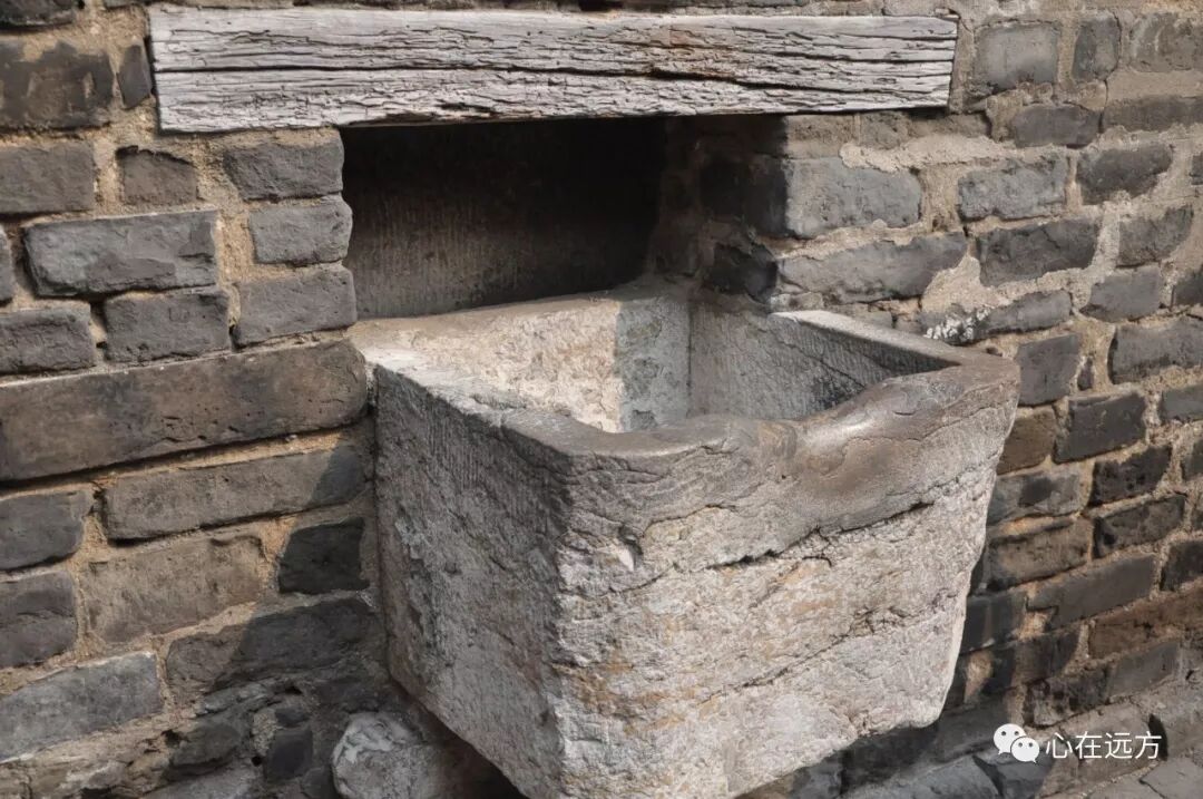 孔府的整体布局有些像故宫,也是前半部作为政务用,后半部则为内院,为家人居住。内院与前院之间有个走廊,在门的右侧有一个方石槽,石槽里有一个与墙内相通的窄缝儿,这是输送水用的。如果外面有送水的人,他们是不能入内府的,只能在此将水倒入石槽,水从这个窄口流入院内,来完成送水的工作。